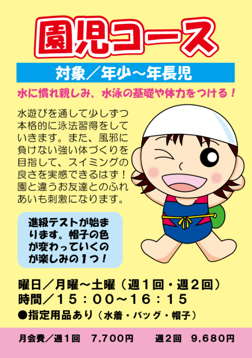 園児コース・小学生コース・中学生コースは指定用品が必要となります。