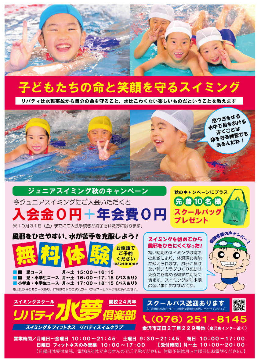 髪や肌、目への刺激をマイナスイオンがおさえてくれるため、安心してもぐってください。リバティのプールはアトピーの方や赤ちゃんもスイミングを楽しむことができます。もちろん冬でも温かい、1年中温水プールです。