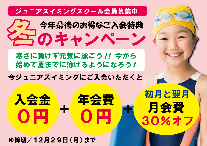 ジュニアスイミングではただいま冬のキャンペーンを実施中です。
