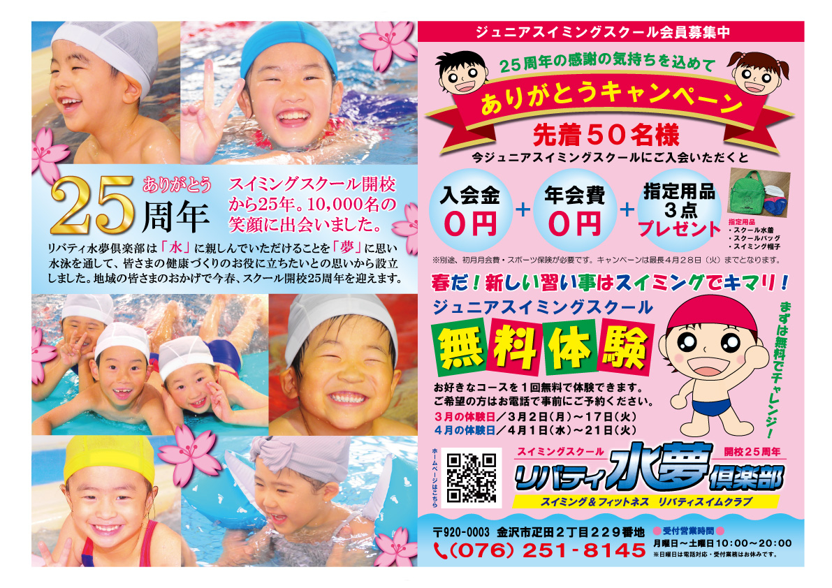 ジュニアスイミングでは25周年ありがとうキャンペーンを実施しております。