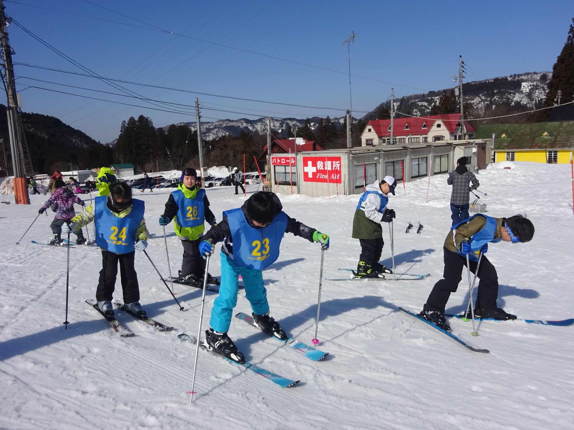 小学生20名のおともだちと富山県の極楽坂スキー場でレッスンを行いました。
