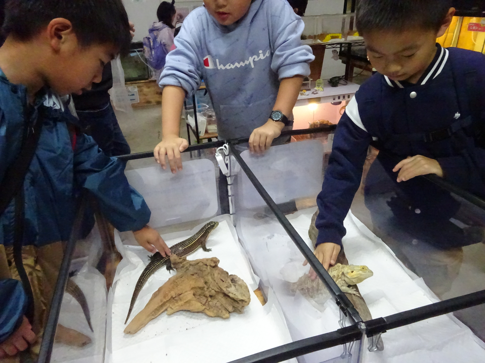 昆虫爬虫類ワールドではヘラクレスオオカブトやフトアゴヒゲトカゲなど、世界の珍しい生き物にドキドキしながらふれあいました。